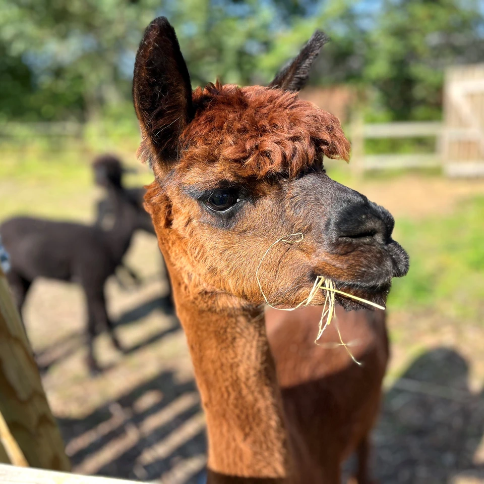 Vi har i vores hyggelige have både geder, høns og alpacaer.