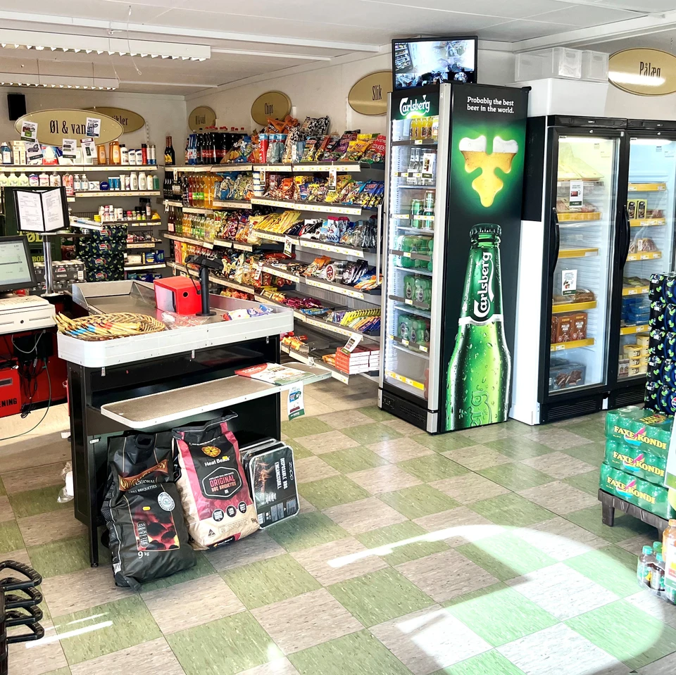 I butikken kan alle dagligvarer købes. Vi har gas, mulighed for bestilling af morgenkager og sandwich mm.